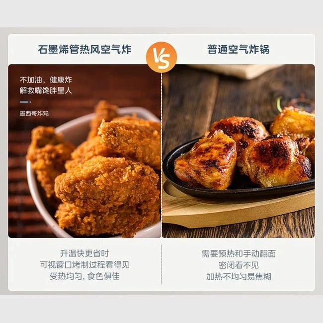 - High-efficiency graphene air frying tube generates quick, uniform heating for crispy meals.